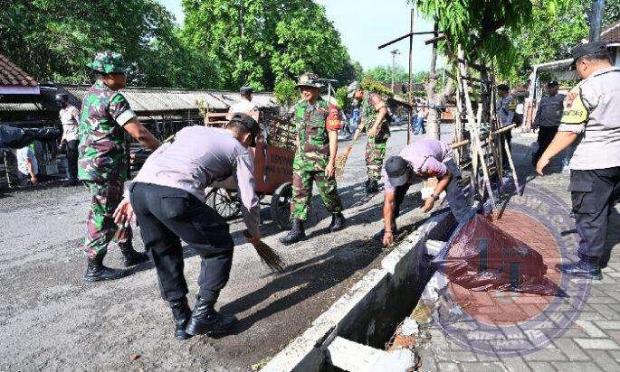 Kodim 0726/Sukoharjo dan Polres Sukoharjo bersinergi, Bersihkan Pasar Gawok dan bagikan Paket Sembako