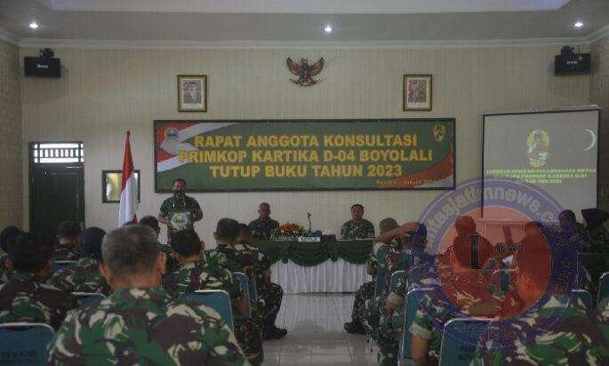 Kodim 0724/Boyolali hari menggelar Rapat Anggota Konsultasi (RAK) Primkop Kartika D-04 Boyolali yang bertempat di Aula Makodim 0724/Boyolali Jl. Padanaran Desa Tegalmulyo Kecamatan Mojosongo Kabupaten Boyolali. Rabu ( 03/01/24)