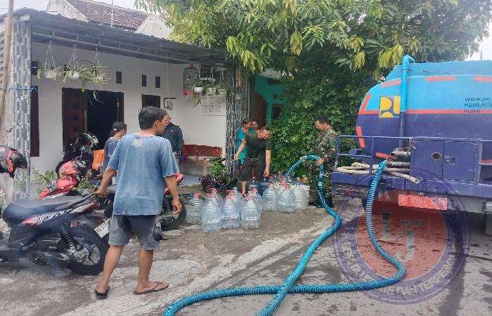 Wujud Kepedulian, Babinsa Pucangsawit Bantu Pendistribusian Air Bersih Untuk Warga