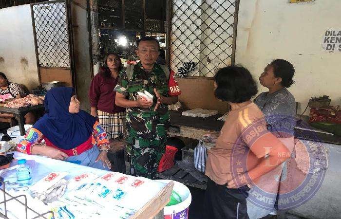 Babinsa Purwodiningratan Sambangi Pasar Tradisional Sampaikan Pesan Jaga Kebersihan Lingkungan