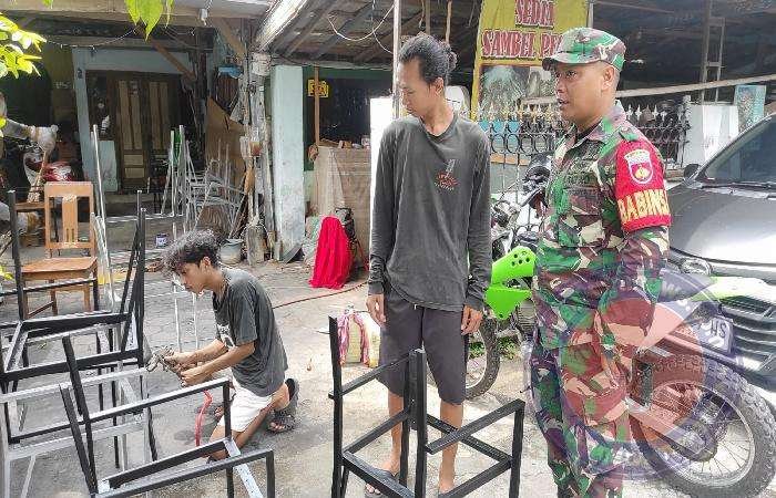 Bentuk perhatian dan kepedulian terhadap warga terutama Pengusaha UMKM, Babinsa Kelurahan Kratonan memantau kegiatan warga dalam usaha pembuatan kursi taman yang akan di kirim ke pemesan dari pengusaha meuble di kota bogor.