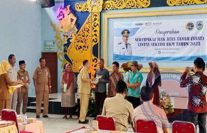 PACITAN lintasjatimnews.com – Pemerintah Daerah Kab. Pacitan melalui BPN kembali memberikan sertifikat atas kepemilikan tanah bagi para pelaku Usaha Kecil dan Mikro (UKM) yang ada di Desa Belah, Kec. Donorojo, Kab. Pacitan, Selasa (09/01/2024).