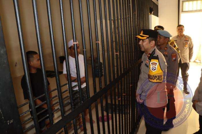 Wakapolres kemudian memeriksa kondisi ruang tahanan satu per satu. Ia memastikan bahwa ruang tahanan dalam keadaan bersih dan nyaman, serta tidak ada barang-barang yang tidak seharusnya berada di dalam ruang tahanan.