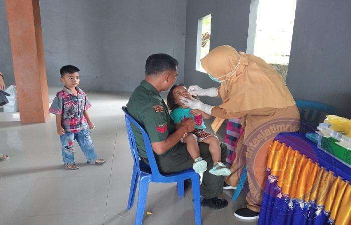 Sragen, Pagi ini Koptu Ngadiyono babinsa desa Genengduwur Koramil 15/Gemolong Kodim 0725/Sragen mendampingi Giat Sub Pin Polio / Pekan imunisasi anak Polio Sasaran 174 Anak di Balai Desa Genengduwur, Senin ( 15/01/2025 ).