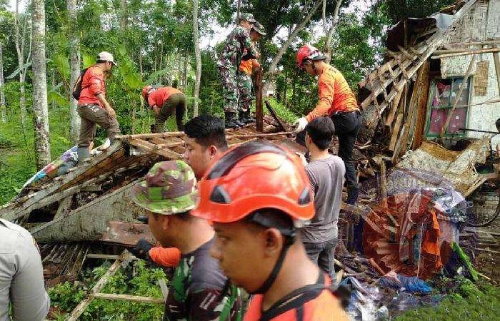 Berkolaborasi secara solid, anggota Koramil 0806/01 Trenggalek bersama tim gabungan lainnya secara efektif membersihkan puing-puing dan merapikan area sekitar rumah yang rusak akibat bencana tersebut.