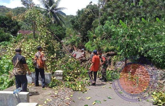 TRENGGALEK lintasjatimnews.com – Cerahnya pagi Jumat (19/1/2024) yang menjadi saksi kejadian luar biasa di Desa Sawahan, Kecamatan Watulimo, Kabupaten Trenggalek. Babinsa Sawahan, Serda Puspo, dari Koramil 0806/07 Watulimo, bersama Pilar Desa dan warga sekitar dengan sigap menanggapi musibah pohon manggis yang tiba-tiba tumbang menimpa rumah Bapak Sugiyono, seorang warga yang tak dapat menghindar dari nasib malang ini.