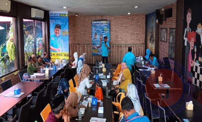 “Acara hari ini tidak hanya sebagai acara sosialisasi dari kami, tetapi juga dalam rangka mengakrabkan temen-temen kita waktu SMA yang lulus nya 42 tahun yang lalu, terimakasih kami sampaikan atas waktunya yang diluangkan untuk menghadiri undangan kami, kami berharap temen-temen mensupport dan mendoakan kami untuk kesuksesan pencalegan ini”, kata H. Ainul Yaqin dalam orasinya.