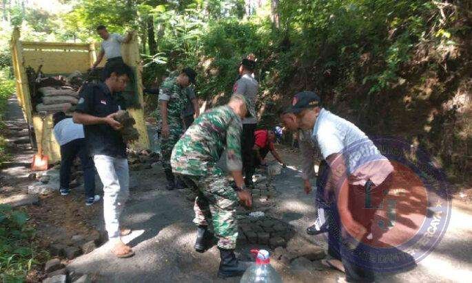 Aksi Nyata: Koramil 0806/10 Pule dan Forkopimcam Terjun Langsung Perbaiki Jalan Rusak di Trenggalek