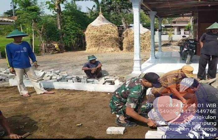Dalam kesempatan tersebut Serka Tegar membaur bersama warga dan turut membantu proses pemasangan paving jalan masuk desa sehingga pelaksanaan kerja bakti berlangsung penuh semangat dan memberikan hasil maksimal.