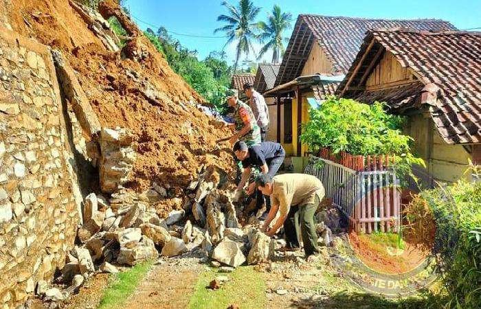 Melihat adanya kejadian tersebut, anggota Koramil 0801/05 Nawangan Kodim 0801/Pacitan, dengan sigap melakukan upaya koordinasi dengan Perangkat Desa dan masyarakat untuk melakukan gotong royong pembersihan material longsor di lokasi.