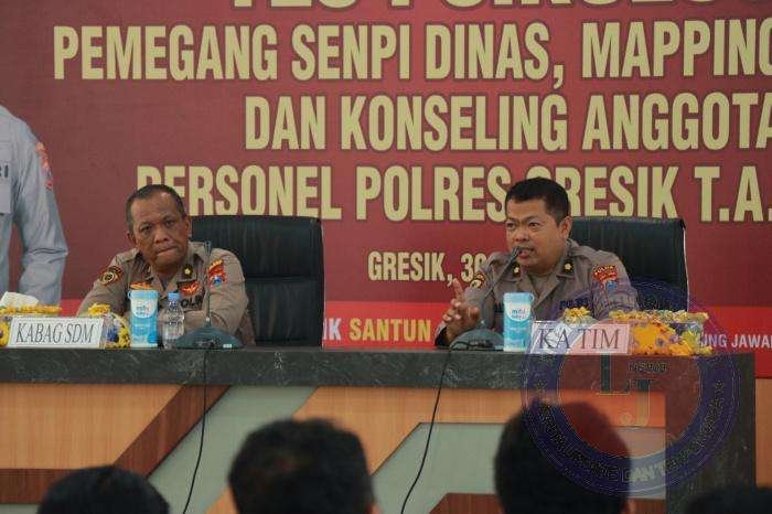 Test psikologi ini diikuti oleh seluruh anggota Polres Gresik yang memiliki senjata api dinas, baik perwira maupun bintara. Test ini dilaksanakan oleh tim psikolog dari Polda Jatim.