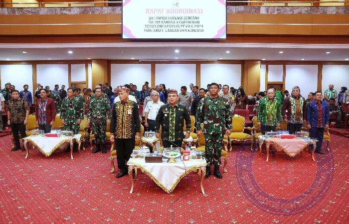 KENDARI lintasjatimnews.com – Pemerintah Provinsi (Pemprov) Sulawesi Tenggara (Sultra) gelar rapat koordinasi (Rakor) lintas sektoral antisipasi potensi bencana dan mewujudkan terselenggaranya Pemilu 2024 yang aman, lancar dan kondusif, bertempat di Ruang Pola Kantor Gubernur, Kamis (01/02/24).