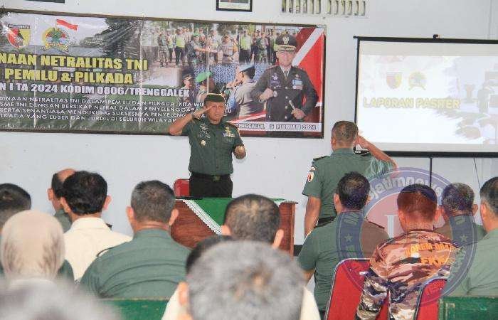 TRENGGALEK lintasjatimnews.com – Dengan tekad kuat, Kodim 0806/Trenggalek mengambil peran proaktif dalam membangun semangat netralitas TNI pada Pemilihan Umum (Pemilu) dan Pemilihan Kepala Daerah (Pilkada) tahun 2024. Upaya pembinaan netralitas TNI ini dilakukan dengan tema yang menginspirasi, “Melalui Pembinaan Netralitas TNI, Kita Wujudkan Profesionalisme TNI dengan Sikap Netral dalam Menyelenggarakan Pemilu dan Pilkada serta Selalu Memberikan Dukungan Penuh untuk Keberhasilan Pemilu dan Pilkada yang Bersih dan Jujur di Seluruh Wilayah NKRI”.