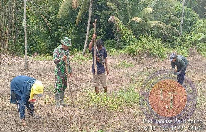POSO lintasjatimnews.com – Dalam rangka mendukung program upaya khusus (Upsus) ketahanan pangan Padi, Jagung dan Kedelai (Pajale) Koramil 1307-09/Poso Pesisir jajaran Kodim 1307/Poso gencarkan pendampingan terhadap petani. Seperti yang dilakukan oleh Babinsa desa Bakti Agung, anggota Koramil 1307-09/Poso Pesisir, Serma Denis Manggora melakukan pendampingan kepada petani dengan membantu menamam jagung di lahan seluas 80 Are milik Bapak Juwadi, warga Desa Bakti Agung, Kecamatan Poso Pesisir Utara, Kabupaten Poso, Selasa, (06/02/2024).