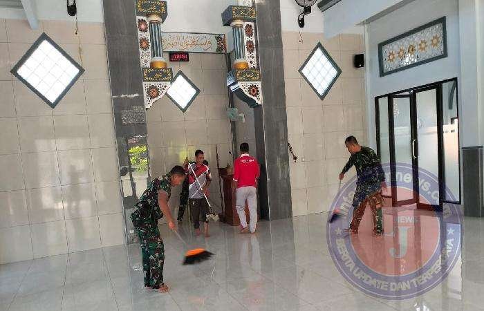 Mulai dari menyapu ruangan masjid, membersihkan karpet dan sajadah, pengepelan lantai, pengelapan kaca, hingga detail-detail kecil seperti membersihkan tempat wudhu, semua dilakukan dengan tekad yang tak tergoyahkan. Satu hal yang menarik adalah ketidakpedulian terhadap perbedaan jabatan, di mana setiap anggota Koramil terlibat aktif untuk memastikan masjid menjadi tempat yang suci dan terawat.