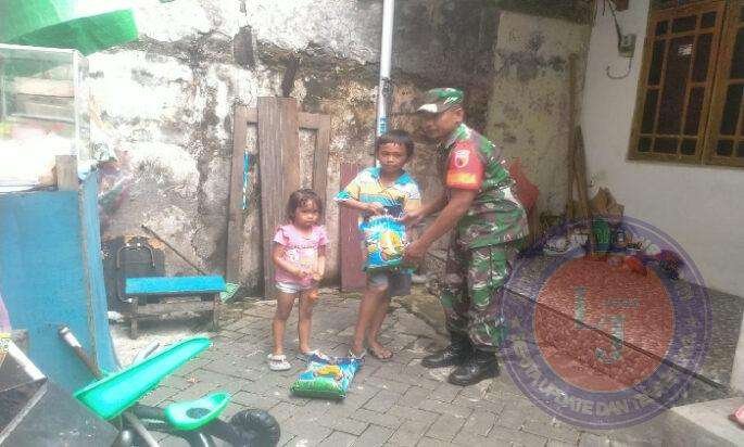 SURABAYA lintasjatimnews.com – Babinsa Kelurahan Pegirian Koramil 0830/02 Semampir Kodim 0830/Surabaya Utara Serka Hatif secara door to door berikan santunan kepada anak Yatim dan Dhuafa Warga RT. 05 RW. 06 Wonokusumo Kidul Kelurahan Pegirian, Jum’at (9/2/24).