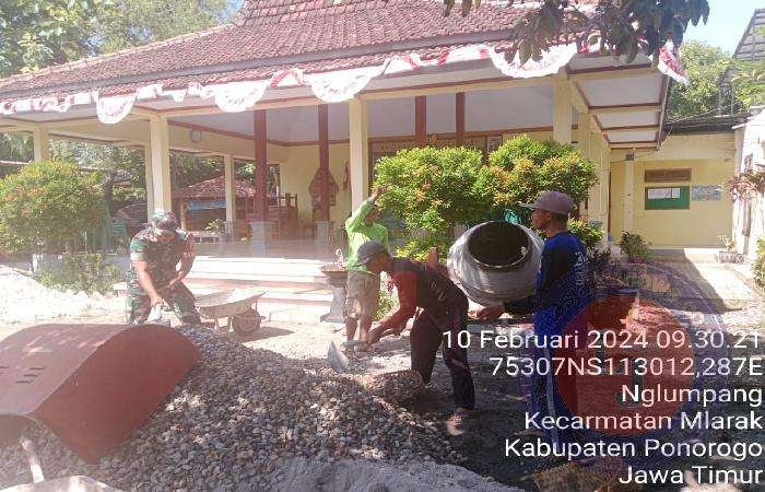 Seperti Serda Dwi Putra, anggota Koramil Tipe B 0802/15 Mlarak, Kodim 0802/Ponorogo ini misalnya, hari ini aktif dalam kegiatan kerja bakti bersama warga di wilayah desa binaan Desa Nglumpang, Kecamatan Mlarak, Kabupaten Ponorogo.