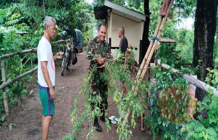 Dalam Mewujudkan lingkungan yang bersih rapi dan Indah (Berseri), Babinsa Joyotakan Serka Rumbawa bersama warga Rt 02/01 Joyotakan melaksanakan kerja bakti pembersihan rumput liar dan pemangkasan ranting pohon disekitar bantaran Sungai Jenes yang sudah panjang dan tidak terawat.
