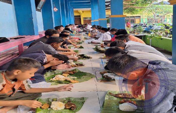 Irdina, salah satu siswi menyampaikan kegembiraannya karena bekal yang dibawah dari rumah serba lauk ikan dan senangnya dibungkus dengan daun pisang dan daun jati, biasanya nasi dibungkus dengan kertas minyak tapi ini dibungkus dengan daun jati, “ujar siswi kelas 3 ini.