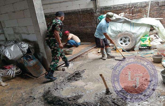 Peran Dalam Kegiatan apapun, Babinsa Bantu Cor Rumah Warga