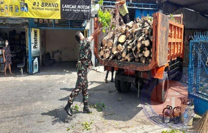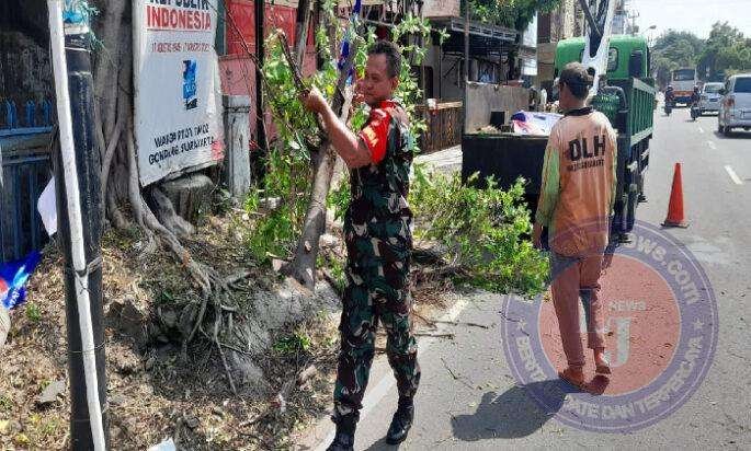 Ditegaskan Serma Saring kerja bakti Babinsa dengan DLH Kota Surakarta yaitu Pemotongan Pohon yang menyentuh kabel listrik di beberapa titik pinggir jala A. Yani wilayah Kelurahan Manahan.