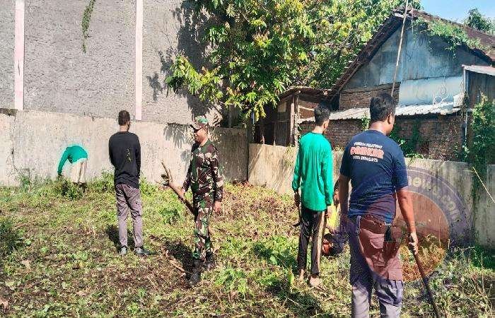 Dalam Mewujudkan lingkungan yang bersih dan asri, Babinsa Kelurahan Joyotakan Serka Rumbawa bersama warga melaksanakan kerja bakti pembersihan rumput liar disekitar Rt 03/02 yang sudah panjang rimbun sehingga terlihat kotor