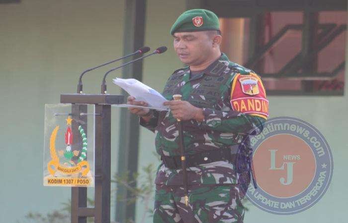 POSO lintasjatimnews.com – Komandan Kodim (Dandim) 1307/Poso, Letkol Inf Hasroel Tamin, S.H.,M.Hub.Int., memimpin Upacara Bendera 17-An bertempat di Lapangan Upacara Kodim 1307/Poso Jalan Urip Sumohardjo, Kelurahan Bone Sompe, Kecamatan Poso Kota Utara, Kabupaten Poso, yang di ikuti seluruh perwira staf dan Danramil jajaran Kodim 1307/Poso, Bintara, Tamtama dan PNS Kodim 1307/Poso. Senin (19/02/2024).