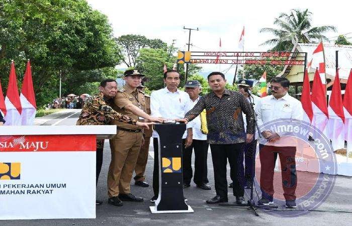 PANGKAJANE lintasjatimnews.com – Presiden Joko Widodo meresmikan 27 ruas jalan yang merupakan Pelaksanaan Inpres Jalan Daerah (IJD) di Provinsi Sulawesi Selatan. Peresmian tersebut dipusatkan di Kabupaten Pangkajene dan Kepulauan (Pangkep), Kamis, 22/02/2024.