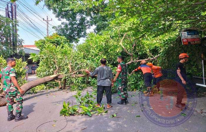 Ditegaskan Sertu Widodo pohon tumbang yang berada di jln. Kebangkitan nasional dikarenakan pohon yang sudah kropos dan terkena angin kencang.