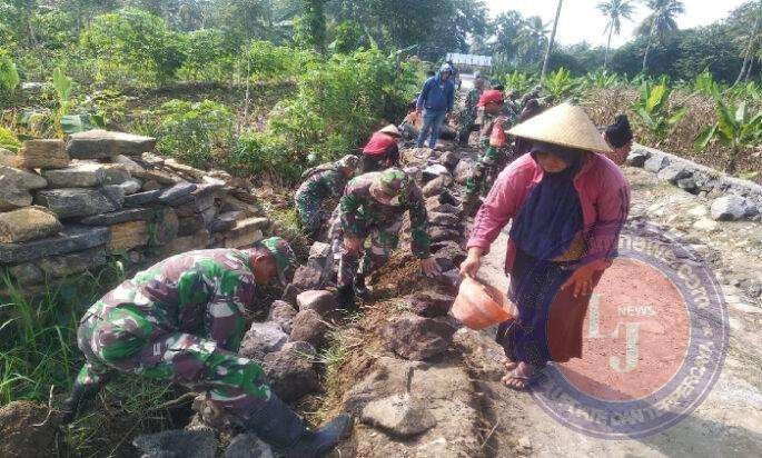 Terlihat dalam pembangunan sasaran fisik pengecoran jalan rabat beton, tidak hanya dikerjakan oleh anggota TNI, tapi hampir seluruh lapisan masyarakat, warga kampung ikut terlibat. Tak hanya orang bapak-bapak atau remaja, tapi ibu-ibu di kampung ini ikut membantu.