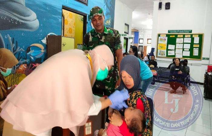 SURAKARTA lintasjatimnews.com – Untuk Mewujud kan Anak dan Balita Sehat Bati Bakti TNI Sersan Mayor Yudhi Widianto Koramil 03 / Serengan Kodim 0735 / Surakarta melaksanakan pendampingan membantu Petugas Medis dari Puskesmas Kratonan kegiatan pemberian imunisasi, dalam rangka pencegahan serta penurunan stunting bertempat di Pukesmas Kratonan Di Jln .Pringgodani No. 34 Kelurahan Kratonan Kecamatan Serengan Kota Surakarta, Pada Hari Senin Tanggal 26 Februari 2024 Pukul : 07.30 Wib