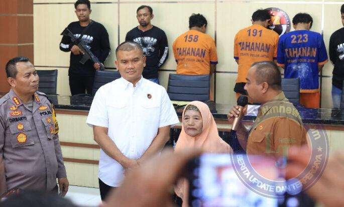 Pada kesempatan yang sama, hadir pula korban jambret yaitu Sumaiyah (73) tahun, didampingi anaknya Sukendah yang juga sebagai kepala desa Driyorejo, Gresik.