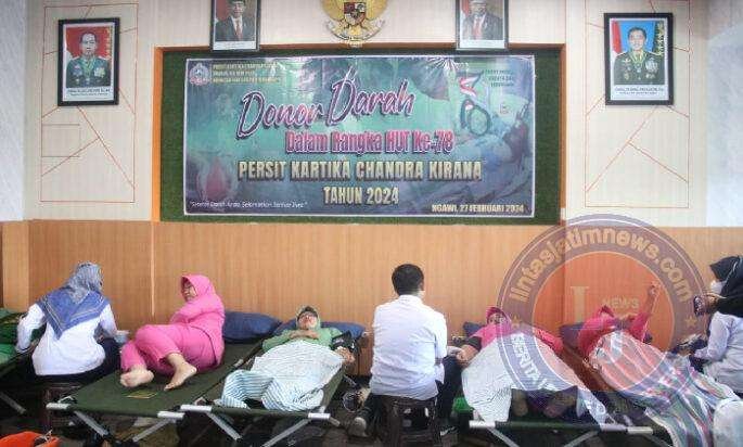 NGAWI lintasjatimnews.com – Dalam rangka Hut Persit ke 78 tahun 2024, Kodim 0805/Ngawi menyelenggarakan kegiatan bakti sosial donor darah yang dilaksanakan di Aula Kodim ngawi, Jl. J.A Suprapto no.01 kota Ngawi. Selasa (27/2/2024).