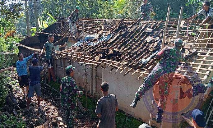 Dengan Semangat Gotong Royong, Babinsa Bantu Pembongkaran Rumah Warga Binaan