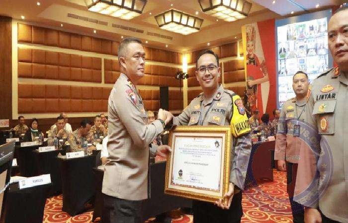 Penghargaan ini diserahkan langsung oleh Kapolda Jatim, Irjen Imam Sugianto kepada Wakapolres Pamekasan, Kompol Andy Purnomo.