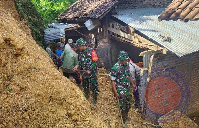 Sinergi TNI-Polri dan Warga Dalam Aksi Gotong Royong Atasi Dampak Tanah Longsor di Trenggalek