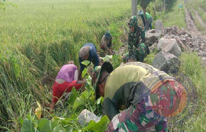 SRAGEN lintasjatimnews.com – Kegiatan TNI Manunggal Membangun Desa (TMMD) Reguler ke-119 Kodim 0725/Sragen pengerjaan talud yang berada di wilayah Desa Gedongan Kecamatan Plupuh Kabupaten Sragen, Sabtu (09/03/2024).