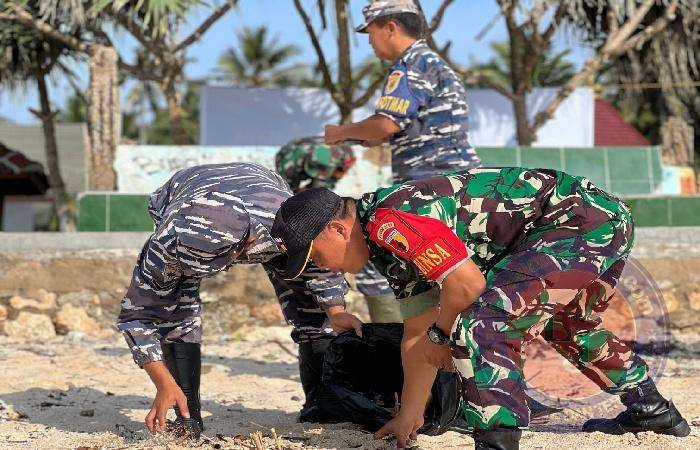 Guna mencegah adanya pencemaran, anggota Koramil 0801/12 Pringkuku Kodim 0801/Pacitan bersama Lanal Pacitan dan masyarakat, berinisiatif melaksanakan pembersihan lingkungan pesisir pantai Srau yang berlokasi di Desa Candi Kec. Pringkuku, Kab. Pacitan, Sabtu (09/03/2024).