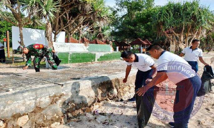 Guna mencegah adanya pencemaran, anggota Koramil 0801/12 Pringkuku Kodim 0801/Pacitan bersama Lanal Pacitan dan masyarakat, berinisiatif melaksanakan pembersihan lingkungan pesisir pantai Srau yang berlokasi di Desa Candi Kec. Pringkuku, Kab. Pacitan, Sabtu (09/03/2024).