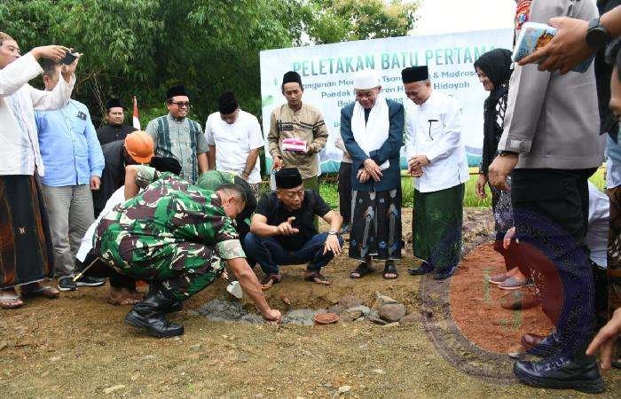 PONOROGO lintasjatimnews.com – Komandan Kodim 0802/Ponorogo Letkol Inf Dwi Soerjono tadi pagi menghadiri acara peletakan batu pertama pembangunan MTs. dan MA Hasanul Hidayah di Pondok Pesantren Hasanul Hidayah jalan Al Hidayah Dusun Mranggen, Desa Bajang, Kecamatan Balong, Kabupaten Ponorogo, Minggu (10/03/2024).