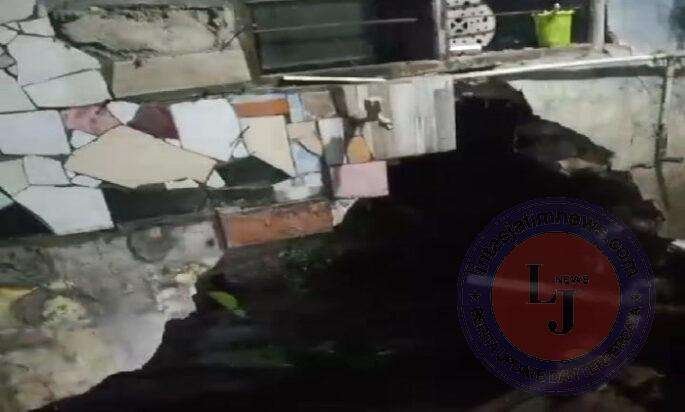 PURWARKARTA lintasjatimnews.com – Salah satu rumah warga yang beralamat digang Nusa Indah lll RT 04 RW 01 Kelurahan Nagrikaler kecamatan Purwakarta dinding rumah ambruk akibat longsor air irigasi saat hujan deras.