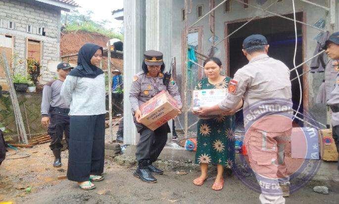 KEDIRI KOTA – Sejumlah Personel Polres Kediri Kota menyambangi dan memberikan bantuan korban bencana alam tanah longsor yang menimpa rumah warga di Desa Kanyoran, Kecamatan Semen Kabupaten Kediri, Minggu (10/2) Pagi