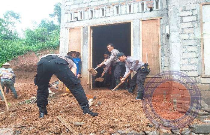 Dalam kedatangannya tersebut, petugas yang dipimpin Kabag Ops Kompol Abraham Sissik, S.Sos, S.H., M.H.bersama Kapolsek Semen Ni Ketut Suarningsih, S.H. melakukan gotong royong pembersihan material lumpur yang menimbun rumah warga salah satunya rumah milik Pak Jono dan Ibu Tiani.