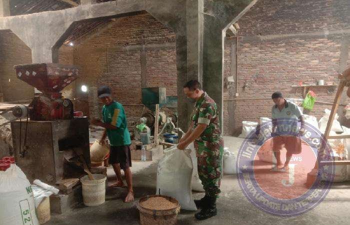 Kegiatan Babinsa komsos dengan pemilik penggilingan padi untuk mendorong para pemilik penggilingan agar selalu bekerja sama dengan para petani dan pemerintah guna mendukung program pemerintah dalam hal Ketahanan Pangan.