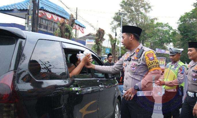 “Kami berbagi takjil sambil menyampaikan pesan untuk para pengendara tentang ketertiban lalu lintas berikut resikonya jika nekat melanggar,”kata AKP Fahmi.