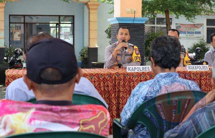 Kapolres Kediri Kota AKBP Bramastyo Priaji, bersama Wakapolres Kediri Kota Kompol Dodik Tri Hendro Siswoyo,didampingi Pejabat Utama (PJU) Polres Kediri Kota, Muspicam Kec Banyakan, menerima curhatan warga masyarakat Ds Jabon