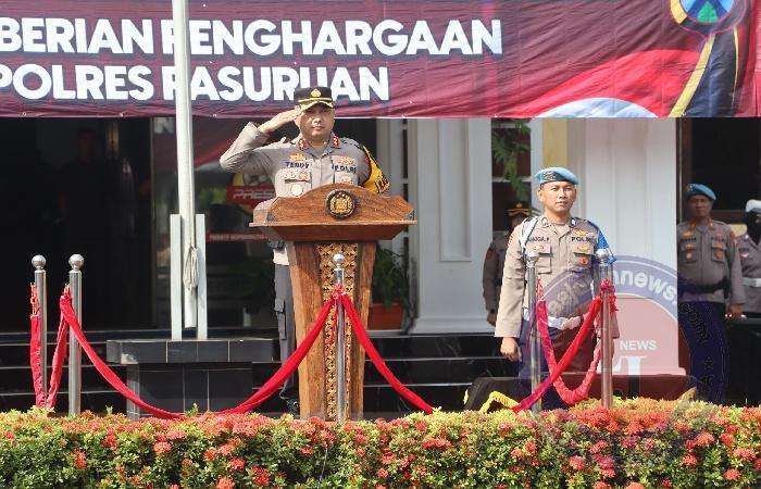 Upacara tersebut dipimpin langsung oleh Kapolres Pasuruan AKBP Teddy Candra, S.I.K., M.Si., yang diikuti oleh PJU Polres Pasuruan, Kapolsek jajaran, Perwira Polres Pasuruan, seluruh Personel dan PNS Polres Pasuruan, serta perwakilan personel Polsek jajaran.