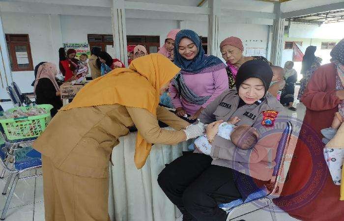 Aipda Dhina Kartikasari, bertindak sebagai pendamping Kader Posyandu aktif memberikan sosialisasi kepada ibu-ibu mengenai pentingnya nutrisi yang baik bagi pertumbuhan anak.