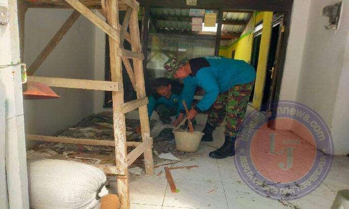 SURAKARTA lintasjatimnews.com – Babinsa Kelurahan Mojosongo Serka Dominggus dan Serka Aswan bersama Anggota Koramil 04 /Jebres membantu pelaksanaan pengerjaan RLTH di Rumah Kapten (Purn) Sarjidjo yang beralamat di perumahan Dempo 2 no 07. RT 01 RW 13 wilayah kelurahan Mojosongo, Kecamatan Jebres, Jum’at (21/03/2024).