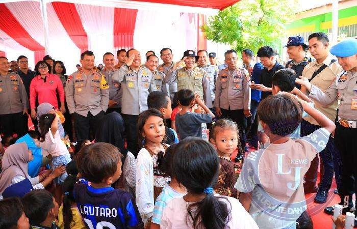 Irjen Dedi kemudian langsung menemui para orang tua dan berbincang santai sembari menghibur para pengungsi dengan candaan ringan untuk sejenak melegakan perasaan warga dan mengurangi beban yang dirasakan warga dengan bantuan yang diberikan.